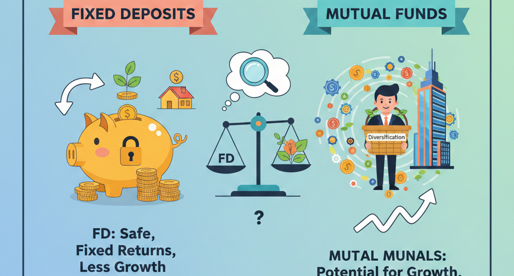 If you want to stay safe and earn steady interest, Fixed Deposits might be the right choice. If you want your money to grow and you can tolerate some market fluctuation, Mutual Funds could be the more rewarding option in the long run.